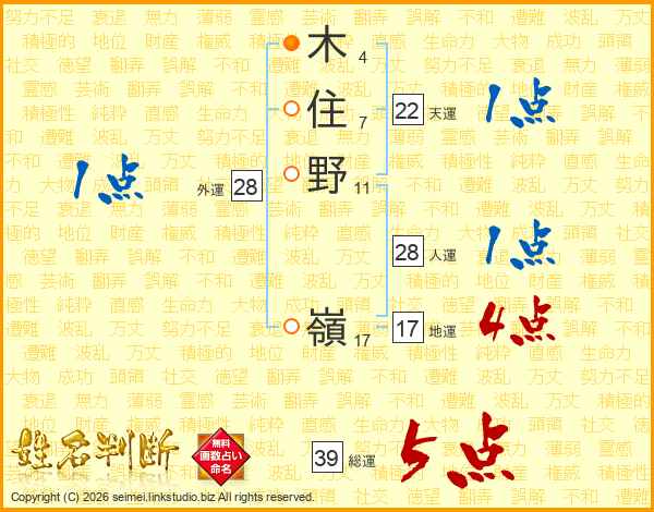 木住野嶺さんの総運は39画の5点!