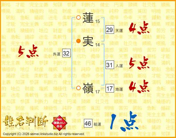 蓮実嶺さんの総運は46画の1点!