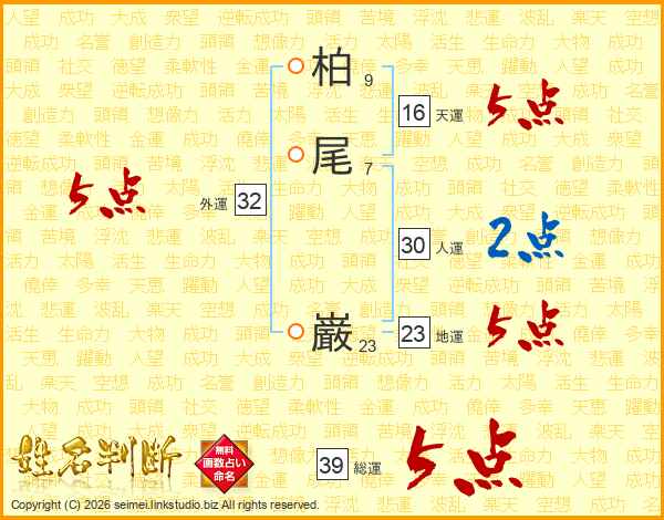 柏尾巌さんの総運は39画の5点!