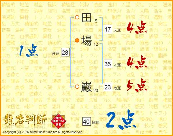 田場巌さんの人運は35画の4点!
