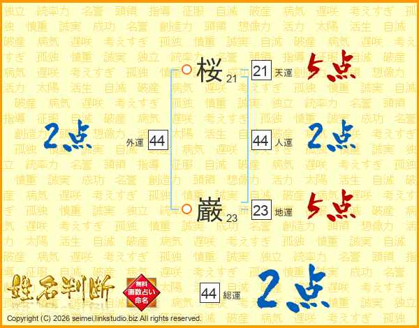 桜巌さんの総運は44画の2点!