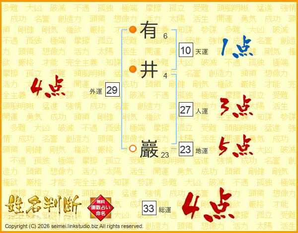 有井巖さんの総運は33画の4点!
