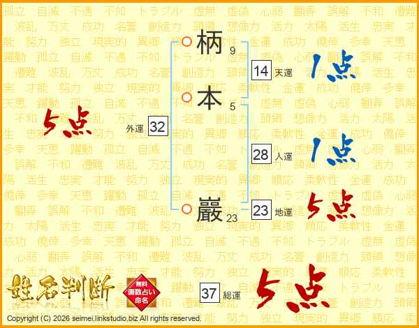 柄(9画)本(5画) 巖(23画)