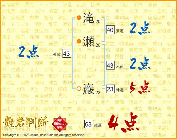 滝瀬巖さんの総運は63画の4点!