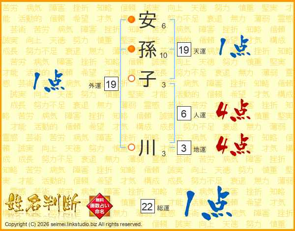 安孫子川さんの天運は19画の1点!