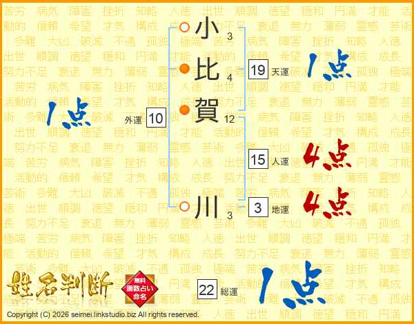 小比賀川さんの人運は15画の4点!