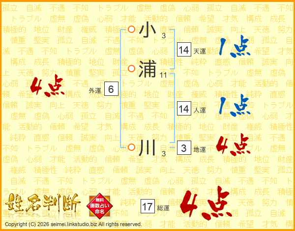 小浦川さんの総運は17画の4点!