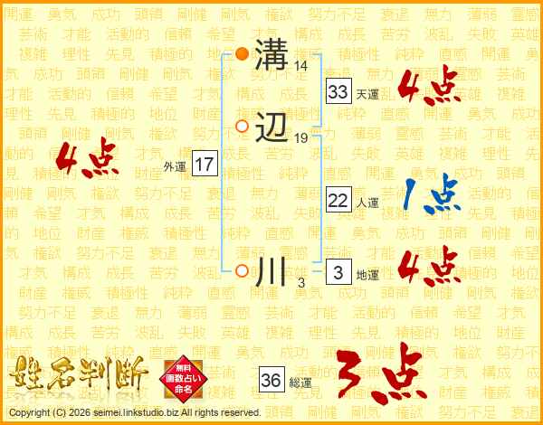 溝辺川さんの天運は33画の4点!