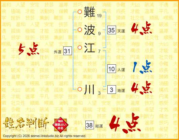 難波江川さんの総運は38画の4点!
