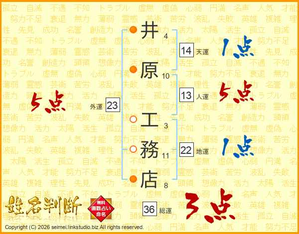 井(4画)原(10画) 工(3画)務(11画)店(8画)