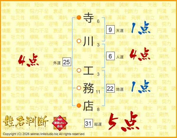 寺川工務店さんの人運は6画の4点!