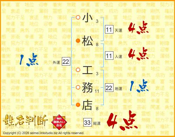 小(3画)松(8画) 工(3画)務(11画)店(8画)