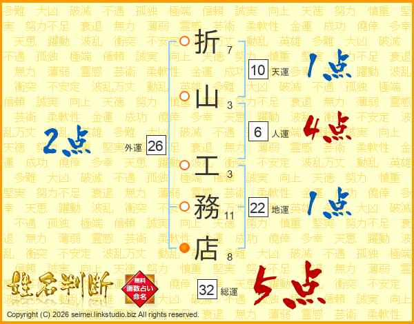 折(7画)山(3画) 工(3画)務(11画)店(8画)