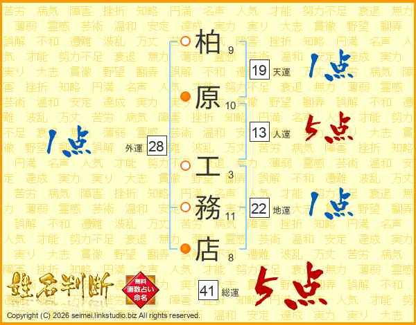 柏原工務店さんの人運は13画の5点!
