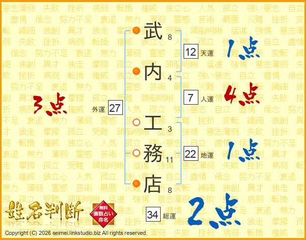 武内工務店さんの人運は7画の4点!
