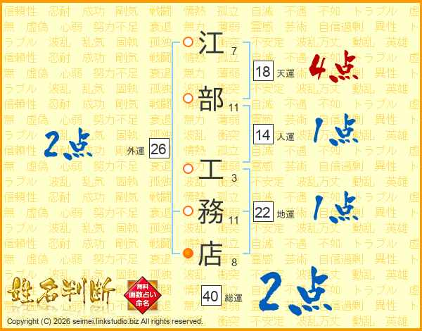 江部工務店さんの人運は14画の1点!