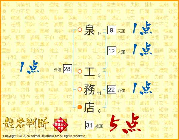 泉工務店さんの総運は31画の5点!