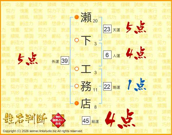 瀬下工務店さんの天運は23画の5点!