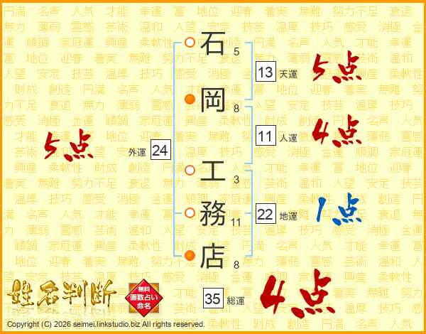 石岡工務店さんの人運は11画の4点!