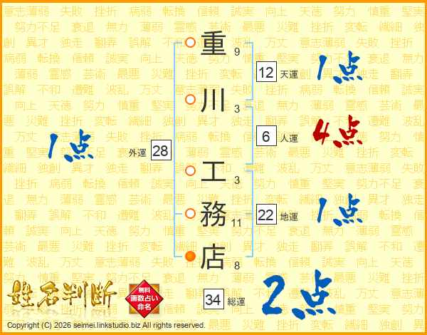 重川工務店さんの人運は6画の4点!
