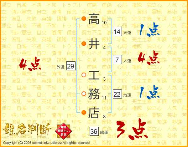 高井工務店さんの人運は7画の4点!