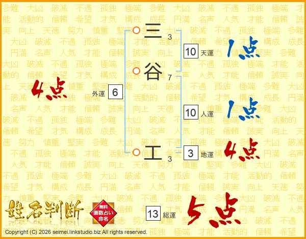 三谷工さんの総運は13画の5点!