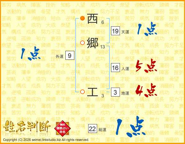 西郷工さんの総運は22画の1点!