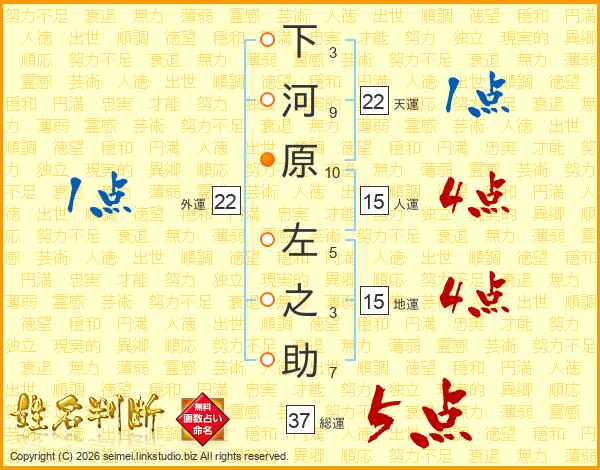下河原左之助さんの総運は37画の5点!