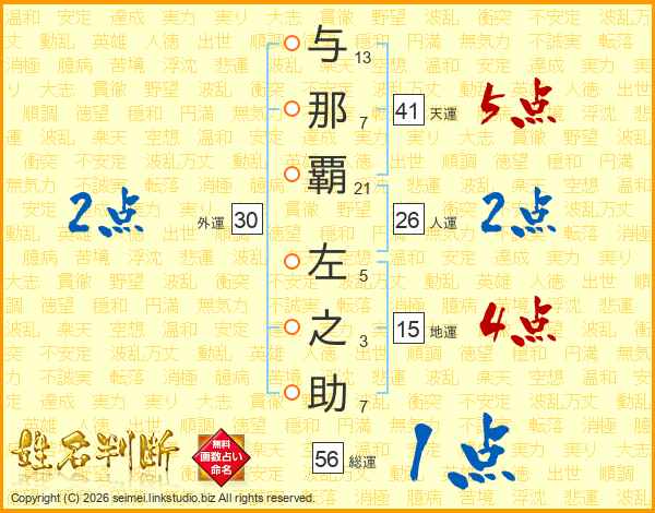 与那覇左之助さんの天運は41画の5点!