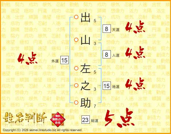 出山左之助さんの総運は23画の5点!