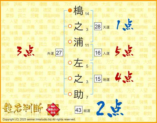 槝(14画)之(3画)浦(11画) 左(5画)之(3画)助(7画)