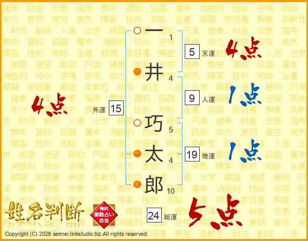 一(1画)井(4画) 巧(5画)太(4画)郎(10画)