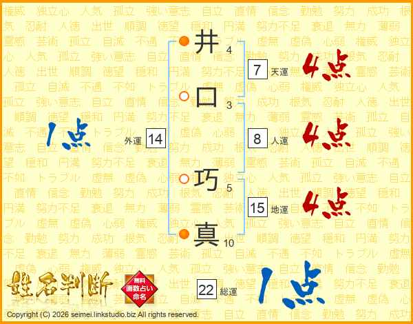 井口巧真さんの総運は22画の1点!