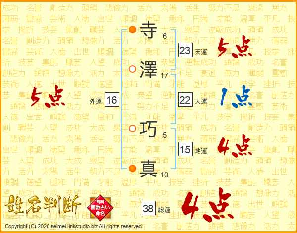 寺澤巧真さんの総運は38画の4点!
