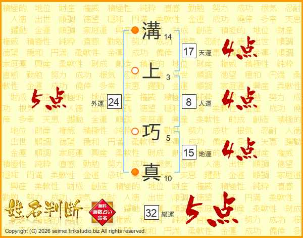 溝上巧真さんの総運は32画の5点!