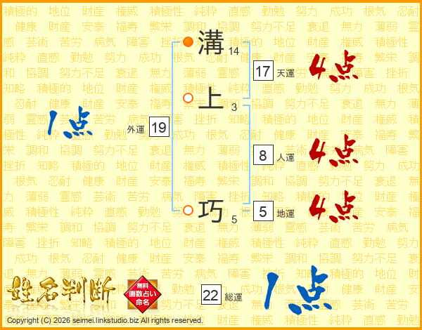 溝上巧さんの天運は17画の4点!