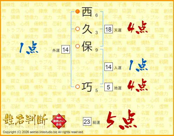 西(6画)久(3画)保(9画) 巧(5画)