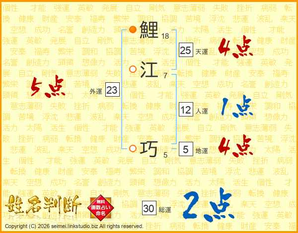 鯉江巧さんの天運は25画の4点!