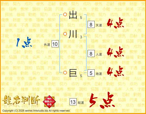 出川巨さんの総運は13画の5点!