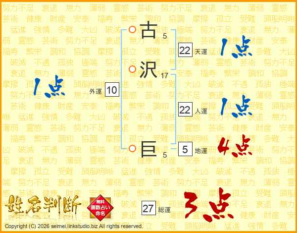 古沢巨さんの天運は22画の1点!