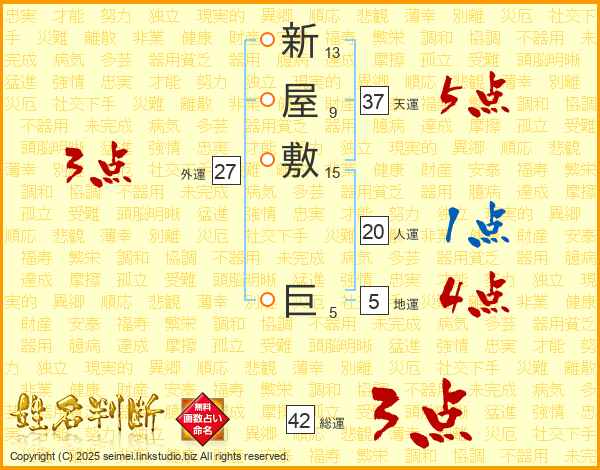 新(13画)屋(9画)敷(15画) 巨(5画)