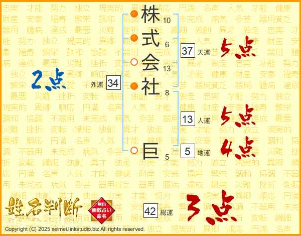 株式会社巨さんの天運は37画の5点!