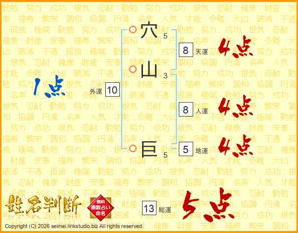 穴山巨さんの総運は13画の5点!