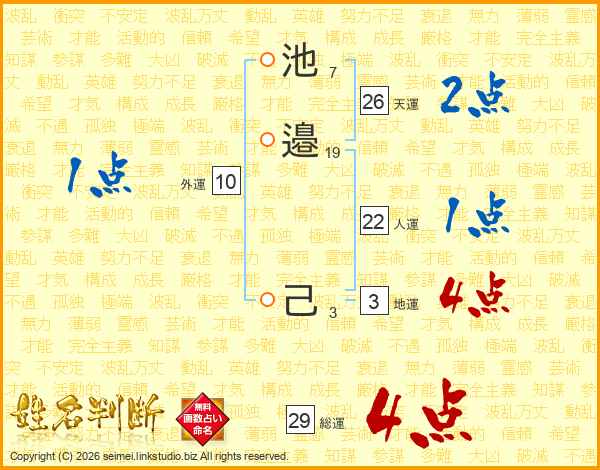 池邉己さんの総運は29画の4点!