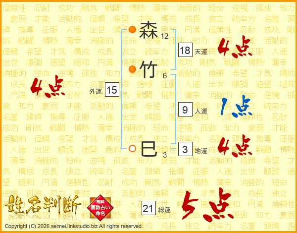 森竹巳さんの天運は18画の4点!