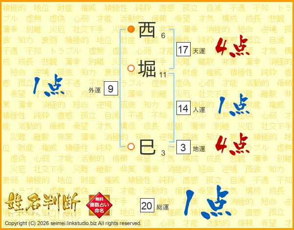 西堀巳さんの天運は17画の4点
