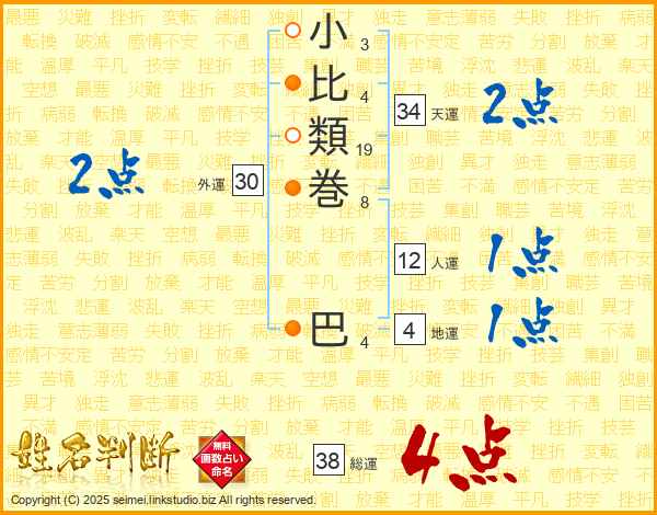 小(3画)比(4画)類(19画)巻(8画) 巴(4画)