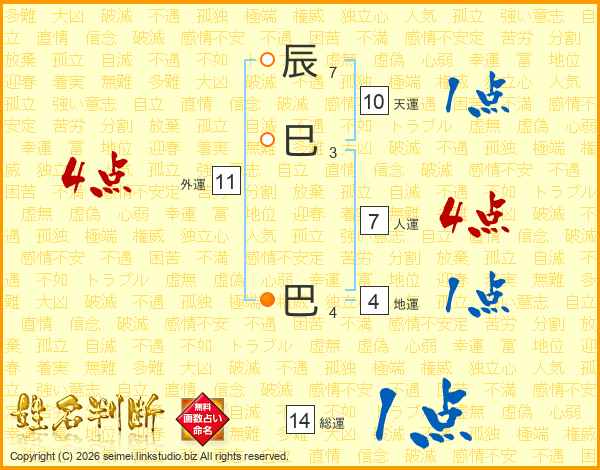 辰巳巴さんの総運は14画の1点!