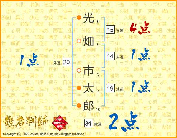 光畑市太郎さんの総運は34画の2点!