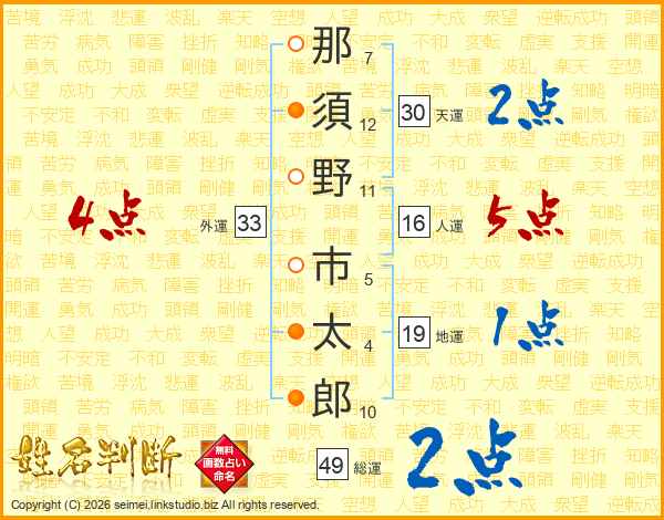 那須野市太郎さんの総運は49画の2点!